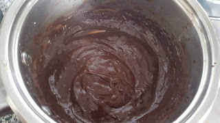ثم نضع الكاسرول على النار مع التحريك المستمر الى ان نحصل على كريمة